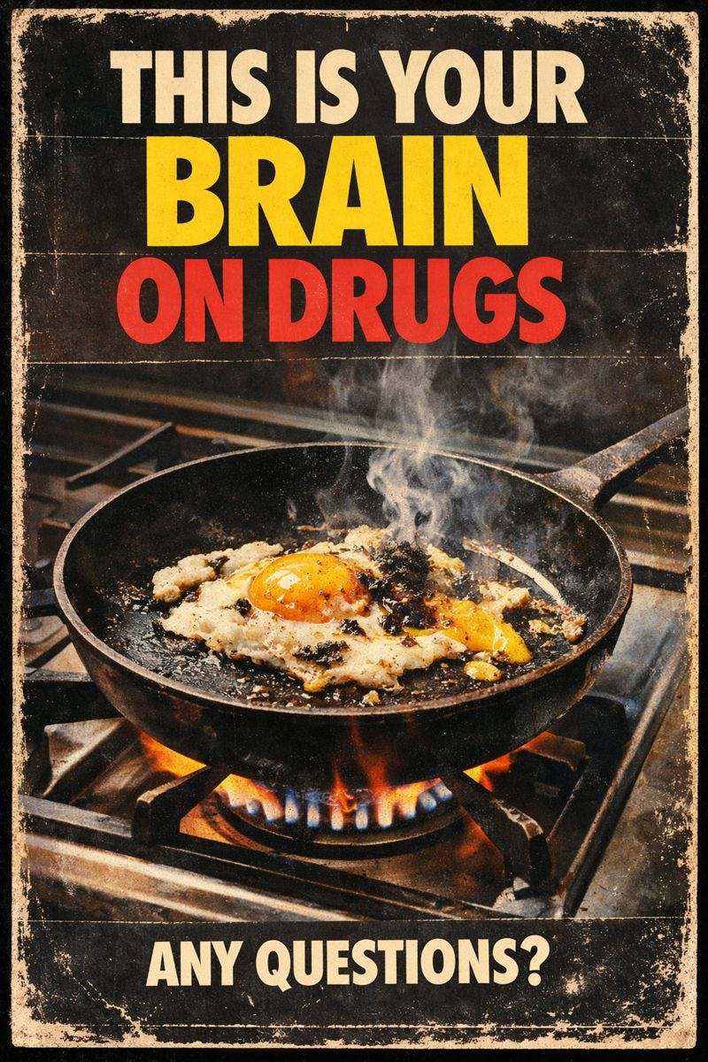 People my age will recognize “This is your brain on drugs.” That is, of course, only part of the story. There’s a lot to be said about pharmaceutical and recreational drug use that is far beyond the scope of this essay. But your goal here is to assess how you feel as a part of your framework for physical health. So, if you are using drugs of any kind, evaluate that: how are they affecting your physical functioning? Have they had their intended effect? Are the side effects worth it (and do you even know what the side effects are?) Do you need help transitioning off of them or finding a superior alternative? Your goal is to know the answer to these questions. (Please be careful about abandoning a drug protocol without the help of a physician.)